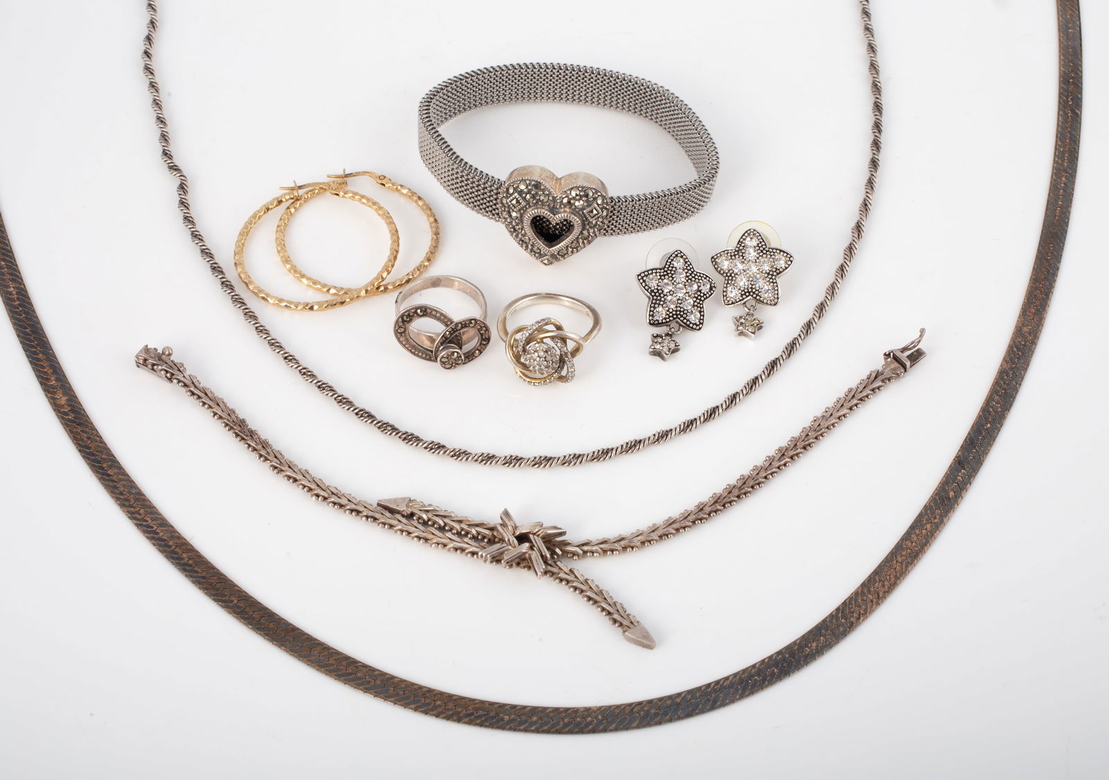 LOT ASSORTED STERLING JEWELRY FINDINGS, W. 5.3 OZ.5 days LeftLOT ASSORTED STERLING JEWELRY FINDINGS, W. 6.4 OZ.5 days LeftCostume Jewelry Lot - 15 pc.Feb 26, 2026LOT ASSORTED STERLING SILVER JEWELRY, 20TH C. W. 8.5 OZ5 days LeftSTERLING SILVER LADIES BRACELET LOT (11)Mar 07, 2026MEGA LOT SILVER & GOLD TONED LADIES JEWELRY (17)Mar 07, 2026Group lot of 8 Vintage 925 sterling silver braceletsJul 15, 2025STERLING SILVER BRACELET & RINGS LOT OF 6 PIECES WITH GEMSTONEJul 01, 2025Lot of Sterling Necklaces and PendantsMar 07, 2026LOT OF (6) PCS. STERLING SILVER JEWELRYFeb 24, 2026Group of 10 vintage 925 sterling silver braceletsJun 30, 202512pc Costume Jewelry, Watch Necklace, Charm Bangle and Gray Metal BanglesFeb 24, 2026Four Sterling Silver Jewelry SetsMar 07, 2026STERLING SILVER CONTEMPORARY JEWELRY6 days Left10 pieces Sterling Silver Necklaces, Earrings and BraceletsMar 04, 2026MIXED SILVER JEWELLERY GROUPING 222.4gFeb 25, 2026