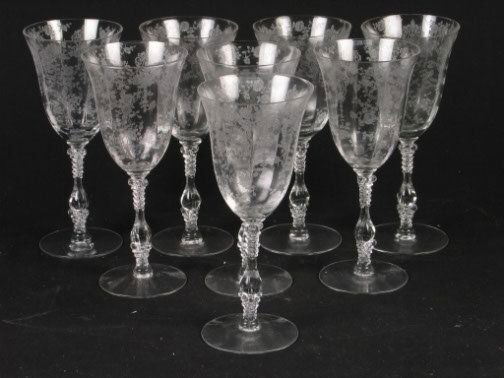 8 ROSEPOINT WATER GOBLETS. Clear depression glass
