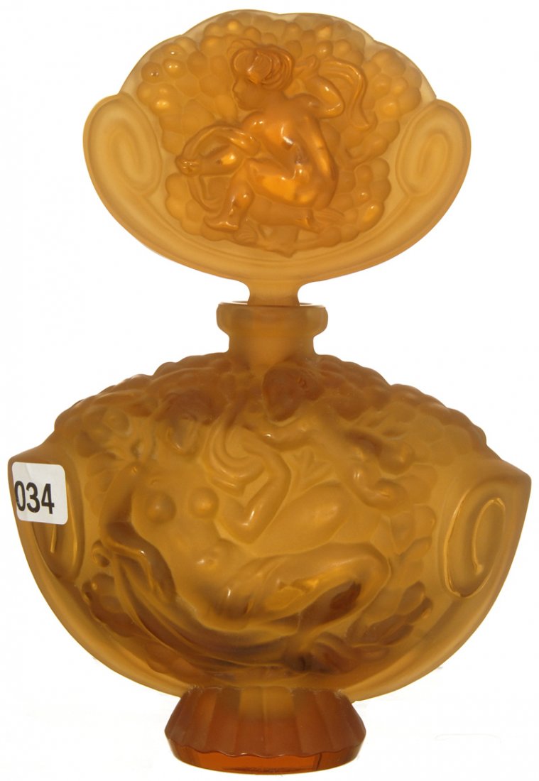 8" UNMARKED CZECHOSLOVAKIA SOLID AMBER EMBOSSED PERFUME