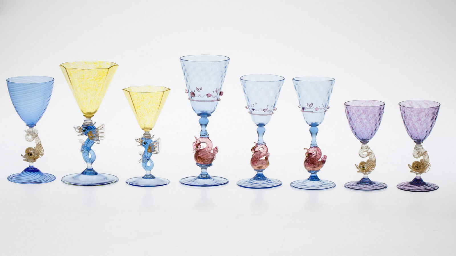 8 Various Venetian Wine Glasses
