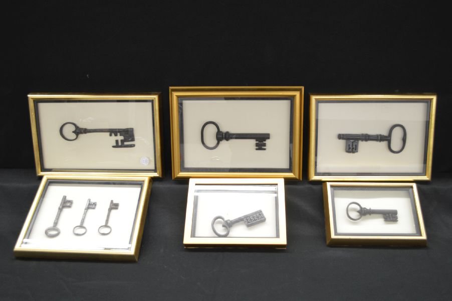 8 VERY LARGE ANTIQUE KEYS IN SHADOWBOX FRAMESPAI