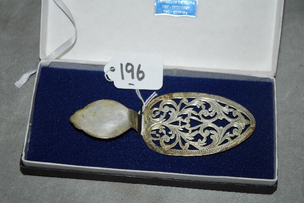 SoldAustrian 800 Silver Pie Server 1900, L 11''Austrian 800 Silver Pie Server 1900, L 11'' In fitted box.Provenance: From a Lathrop Village, Michigan collector.See Sold Price