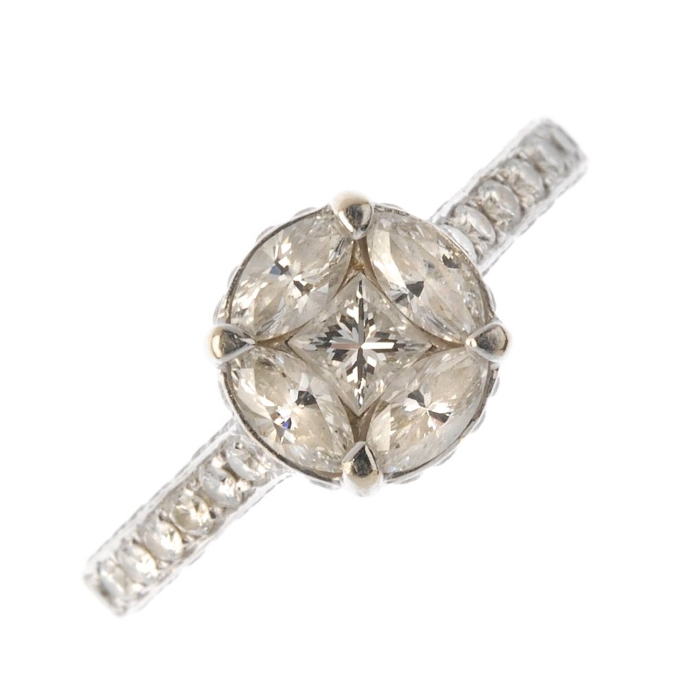 (8000456-2-A) A diamond cluster ring. The square-shape