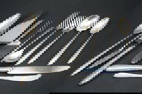TEN-PIECE SET DANISH STERLING SILVER FLATWARE Hallmarked "DG" Weighable silver: 6.4 troy oz. GrossSloans & Kenyon4.3(87)$3007 days Left