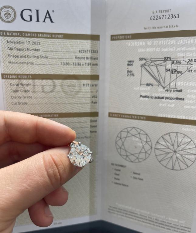 8.33ct J-VS2 Round Diamond Set In Platinum