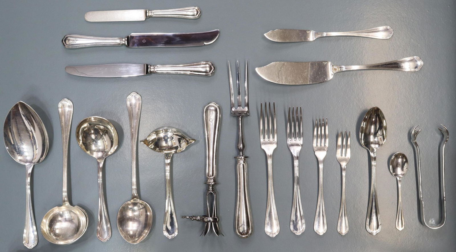 120+ Pc Lot Sterling Flatware, Rogers & Gorham2 days LeftTowle Sterling Silver Flatware ServiceFeb 28, 2026(46) SWEDISH KAB .830 SILVER SCALLOPED FLATWARE SERVICE3 days LeftOdiot - 261pc. Antique French 950 Sterling Silver Flatware Set, Louis XVI Model, Service for 24, 15Towle "Louis XIV" sterling flatware service.5 days LeftChristofle "Oceana" Silver Plate Flatware Set, 23Mar 12, 2026Christofle France Vendome Arcantia pattern shell motif silverplated flatware, 14pc. 8"H x 12 days LeftChristofle "Cluny" Flatware Service Set, 107 Pcs.Mar 05, 2026Kirk & Sons "Repousse" sterling flatware set5 days LeftTiffany & Co. "Wave Edge" sterling flatware set.5 days LeftS. Kirk & Son Repousse pattern sterling silver 13pc. flatware and serving pieces, 14.630ozt. 72 days LeftAustrian 800 Silver Flatware Set for 12 - 146 Pieces Elegant ServiceFeb 27, 202682 Piece Gorham Sterling "Covington" Flatware Set2 days LeftAntique CHRISTOFLE 'Delafosse' pattern 48-piece partial flatware service for 12Mar 15, 2026Odiot Fontenelle 950 Sterling Silver Flatware Set 105 pcs for 106 days Left"Melrose" by Gorham Sterling Silver Flatware (34) 764 GramsMar 28, 2026