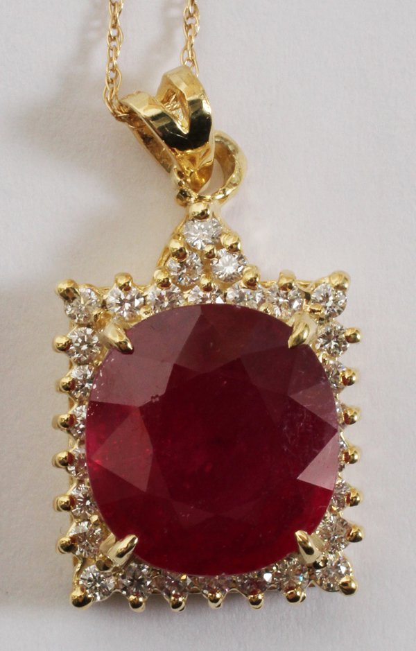 14K Gold 6.97ct Ruby 0.21ct Diamond Pendant
