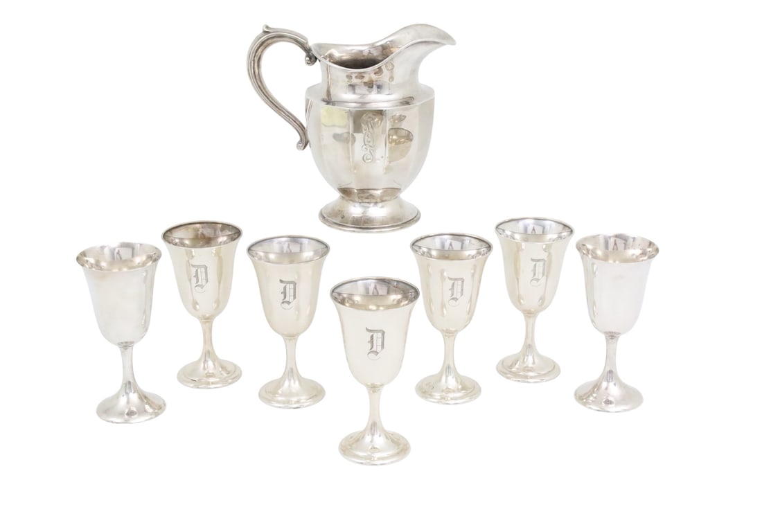 8PC STERLING PITCHER AND 8 GOBLETS, 55 T.O.W.