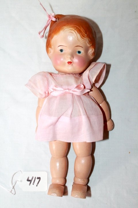 9 1/2" CAMEO DOLL - COMPOSITION WITH WOODEN SEGMENTED