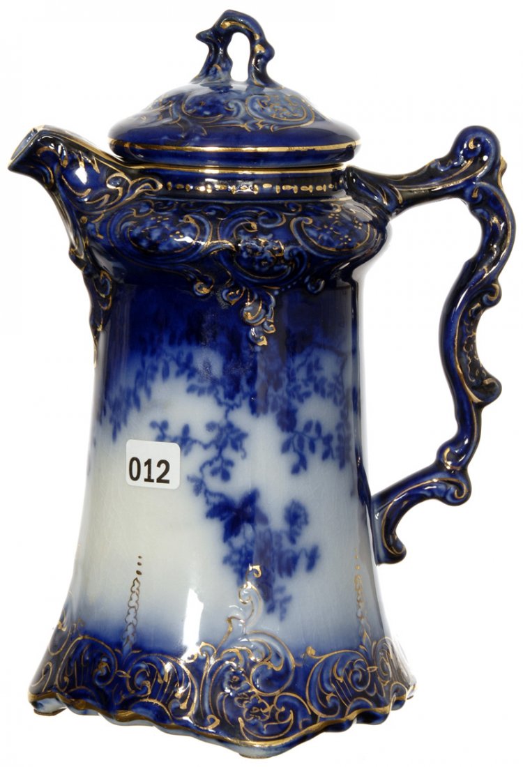 9 1/2" FLOW BLUE LABELLE PATTERN CHOCOLATE POT