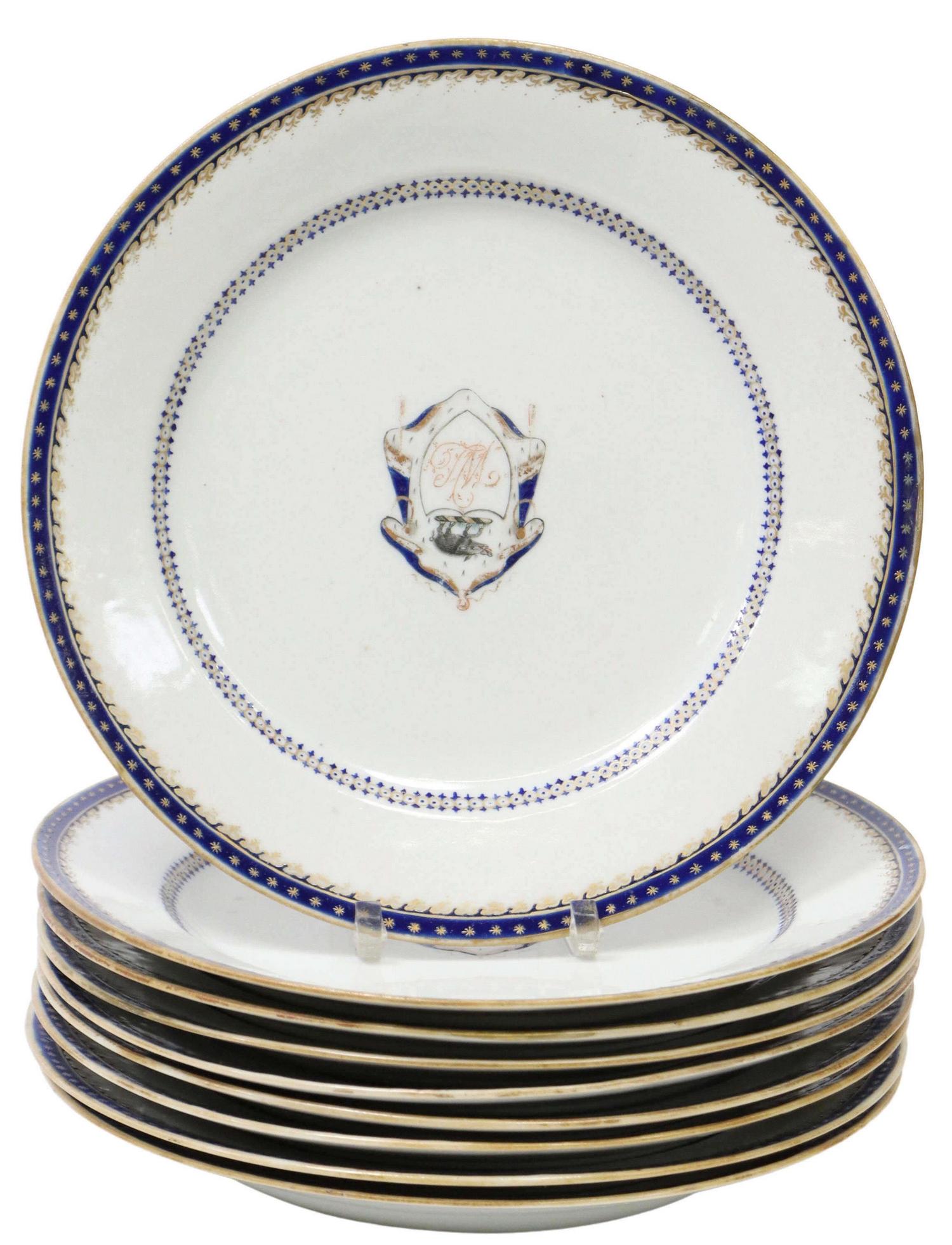 (9) CHINESE EXPORT ARMORIAL PORCELAIN PLATES