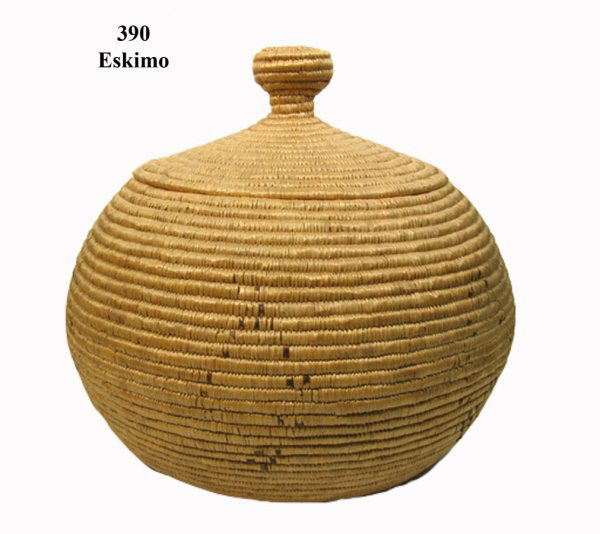 9" Eskimo Lidded Basket. Very fine example.