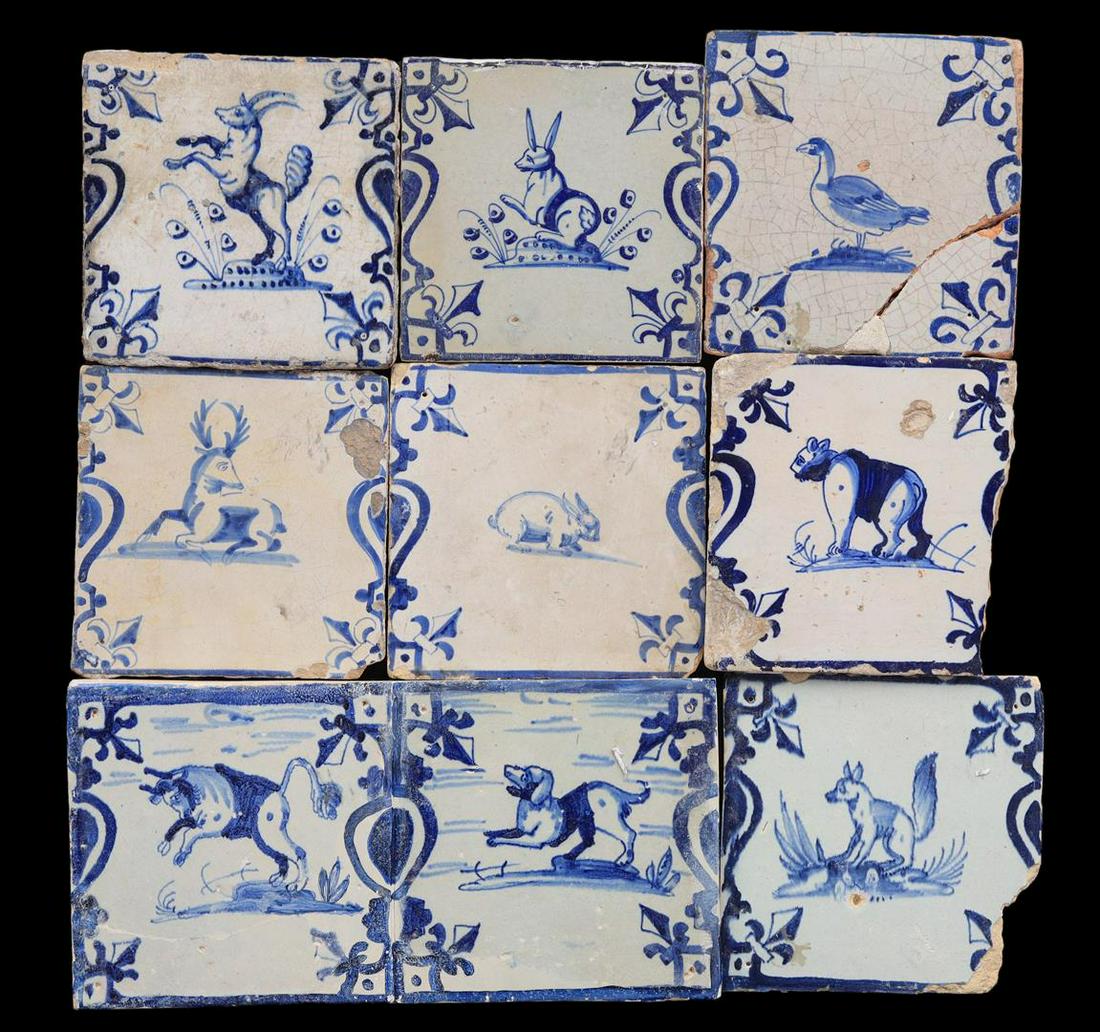 9 glazed earthenware tiles