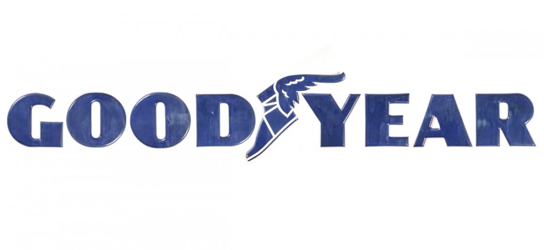 9 Pc. Goodyear Embossed Porcelain Sign