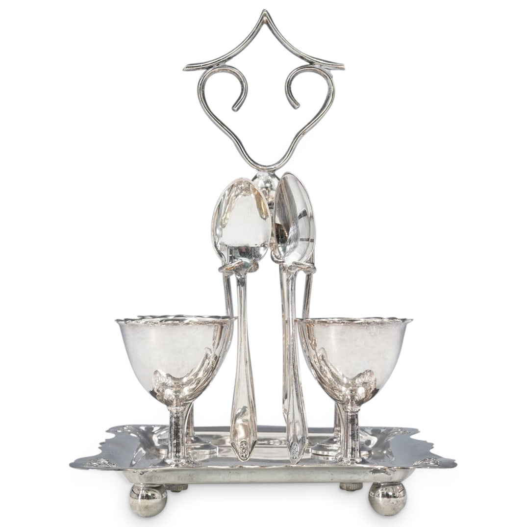 (9 Pc) Silver Plated Egg Caddy Set