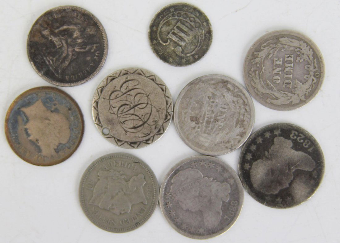 (9) SILVER US COINS DIMES & THREE CENT SILVER