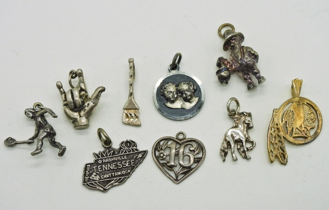 16 Vintage Sterling Charms & Pendants
