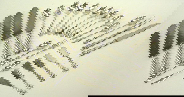 Large Lot Of Sterling Silver Flatware 9" (581g)Mar 08, 20269PC LOT OF STERLING SILVER, 22 T.O.W.Mar 07, 2026Lot Of Ten Mixed Pattern Sterling Silver Flatware Items7 days LeftGORHAM AND OTHER STERLING SILVER FLATWARE, LOT OF 25Mar 04, 2026INTERNATIONAL SILVER CO. AND OTHER STERLING AND 0.950 SILVER FLATWARE AND SERVING UTENSILS, LOT OFMar 04, 2026Lot of sterling silver spoon sets. To include: 1) Towle set of 12 teaspoons. 6.2 ozt. 2) Durgin setMar 01, 2026Collection Handsome Sterling Silver Flatware Sets6 days LeftLot of 14 Sterling Silver Spoons, Assorted Patterns, 355 Grams TotalMar 15, 2026Sterling Silver Estate Assorted Flatware3 days LeftLarge Collection of Antique & Vintage Silver Plate Flatware CutleryCollection of Sterling Flatware5 days Left101 Pieces Mixed Sterling Silver Flatware.7 days LeftASSORTED STERLING SILVER FLATWARE.3 days LeftCollection of Various Sterling Silver Flatware Pieces6 days Left(24 Pc) Sterling and Sterling Handled Misc Flatware3 days Left71-Piece Sterling Silver .925 Flatware Set