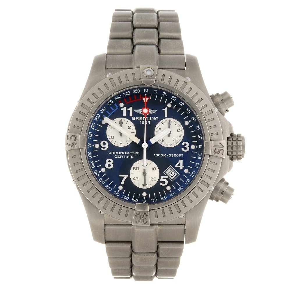 SoldBreitling Avenger Black Dial Chronograph Titanium Watch E13360Metal : Titanium Designer : Breitling Movement : Automatic Measurements : 44mm case diameter Reference/Model: : E13360/Avenger Chronograph Functions : Hours, Minutes, Seconds, DaSee Sold Price