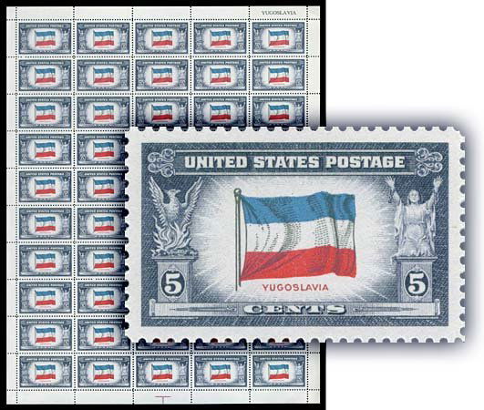 #917a YUGOSLAVIA FLAG 5¢ REVERSE PRINTING SHEET