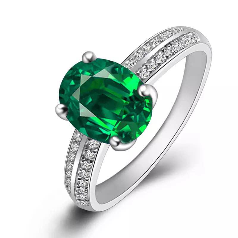 925 Silver 2.51ct Emerald 0.321ct Diamond Ring