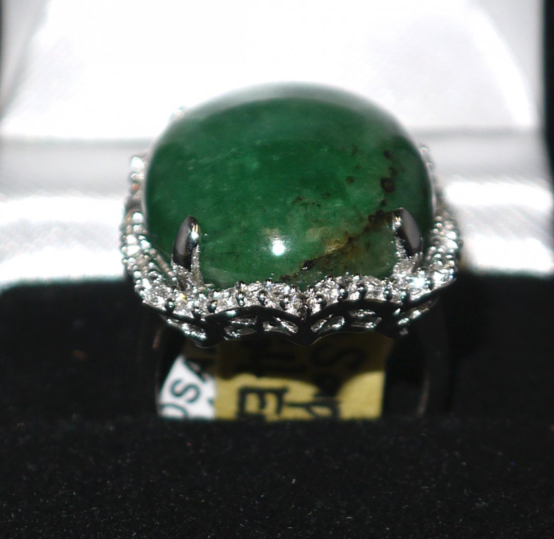 925 Silver 28.64ct Emerald 1.00ct Sapphire Ring