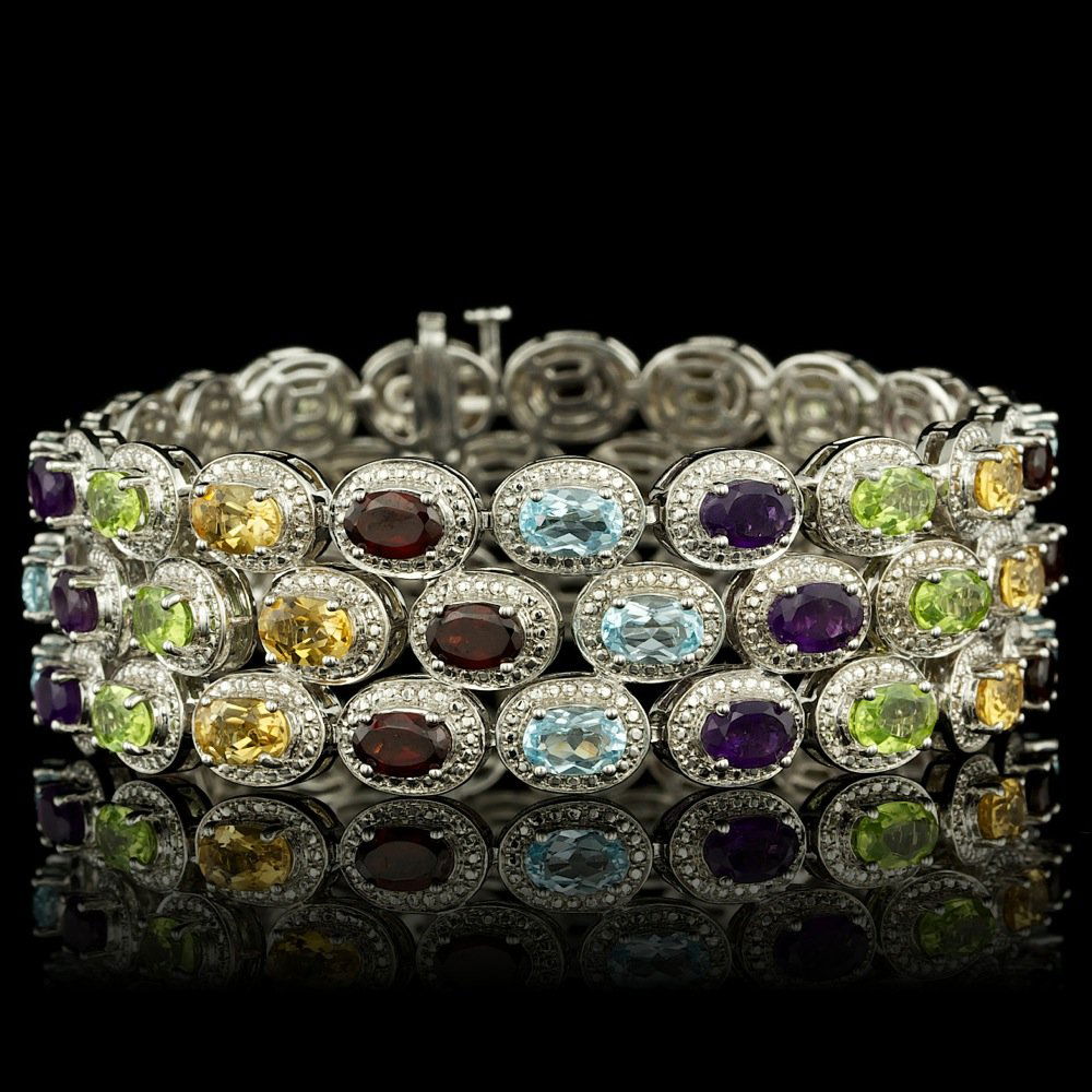 SoldMulti colored stone BraceletBeautiful 925 silver ladies bracelet with muti colors gemstones. The bracelet has a total of 11 colored gemstones. Total weight is 34.4g.See Sold Price