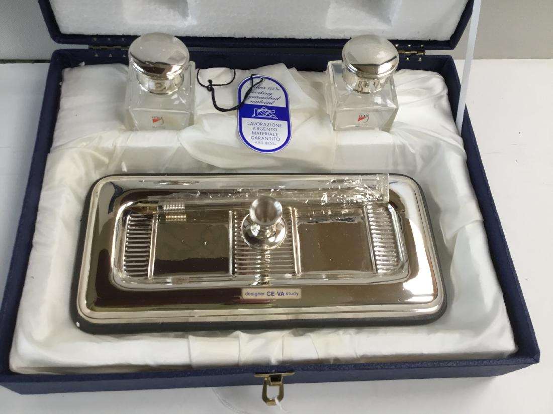 925 SILVER AND CRYSTAL INKSTAND