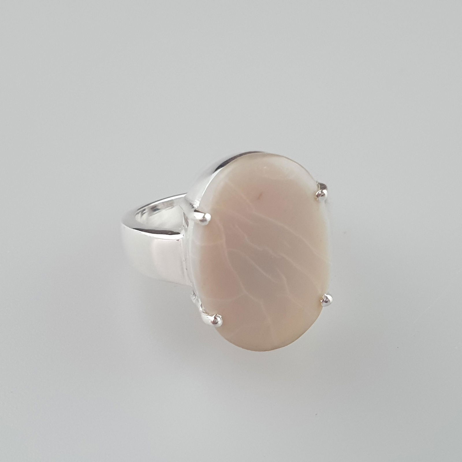 950 Silver Mother Of Pearl Oval Ring. Size 7