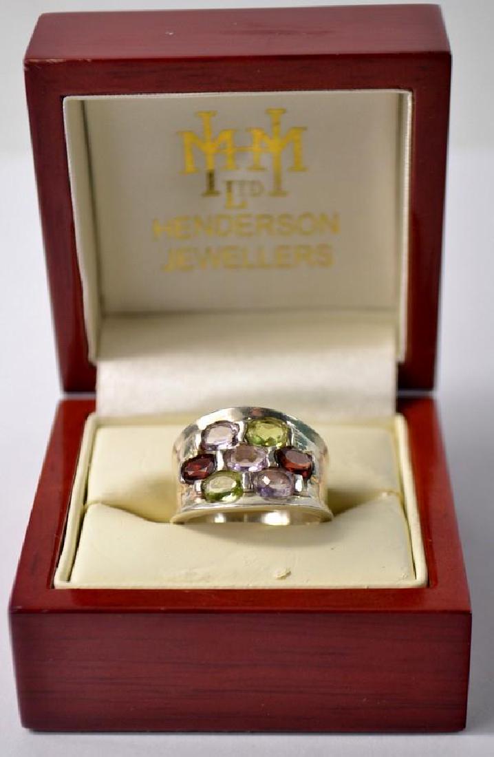 925 stamped silver ring set with 7 various coloured