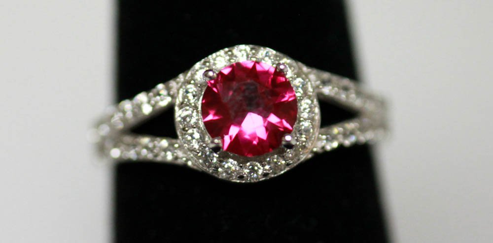 .925 STERLING SILVER MODERN PINK CZ RING