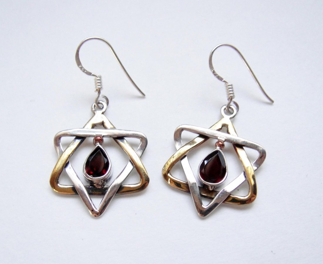 925 Sterling Silver, Red Garnet Star Dangle Earring