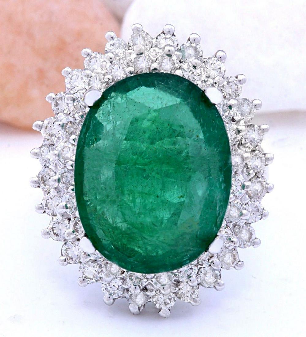 14k White Gold 3.20ct Emerald 1.80ct Diamond Ring