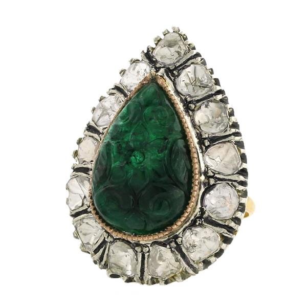 9.35 Carved Emerald Rosecut Diamond Ring