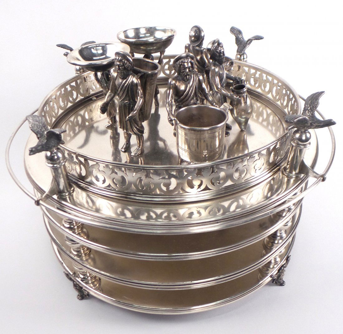 ASSORTED SILVER-PLATED AND OTHER ARTICLES, LOT OF SEVENMar 04, 2026Lot of sterling silver tableware. Various handled baskets and dishes, all except for one withoutMar 01, 2026Vintage Pewter Tableware Lot: John Somers, Wilton Columbia, Empire, KS6 hrs LeftSterling Silver Estate Tablewares2 days LeftHandmade 925 Sterling Silver Ornate Seder Plate with Hebrew Engravings5 days Left13 pc Sterling Silver Bowl, Cup, Shakers & Trays6 days LeftJudaica Sterling Silver Hanukkah MenorahApr 07, 2026Gilded 925 Sterling Silver Handmade Crown Matzah Holder4 days LeftLarge Silver Plate Punch Bowl Set with Twelve Cups, Ladle, and TrayMar 07, 20262 Sterling Silver Pieces 17.5 Troy OuncesMar 07, 2026C.J. Vander English Sterling Figural CompoteMar 08, 2026Elegant 7 Piece 925 Sterling Silver Floral Leaf Epergne Centerpiece6 days Left800 silver ice bucket with tong4 days LeftCOLLECTION OF SILVERMar 06, 2026LUTZ & WEISS, GERMAN 0.800 SILVER PRESENTATION BASKET BOWLMar 04, 2026(10) PIECE STERLING TABLEWARE GROUPMar 05, 2026