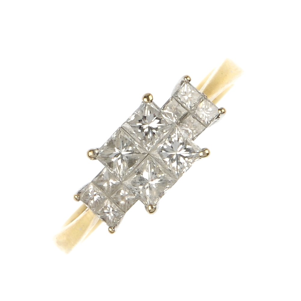 (94596) An 18ct gold diamond cluster ring.