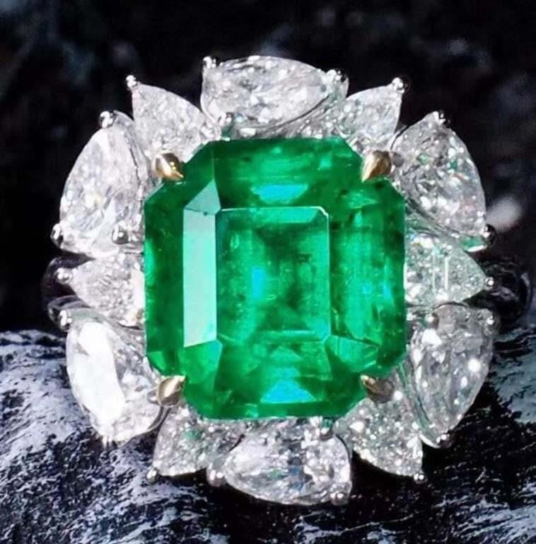 Certified 8.00 Ct Colombian Emerald Ring in 18K White Gold with 210 DiamondsBidhaus4.2(838)$1002 days Left