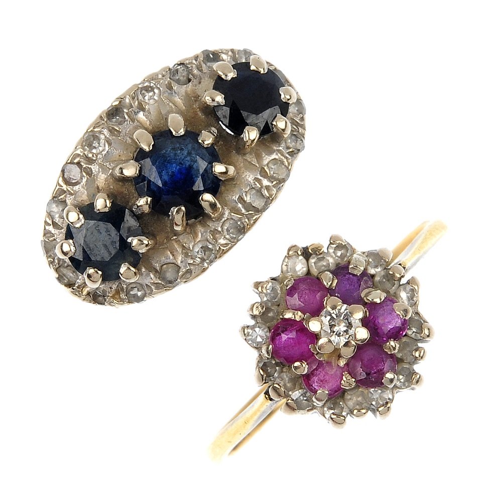 An 18ct gold sapphire and diamond three stone ring and a 9ct gold sapphire and diamond cluster ring,Sworders Fine Art Auctioneers4.4(38)£606 days Left
