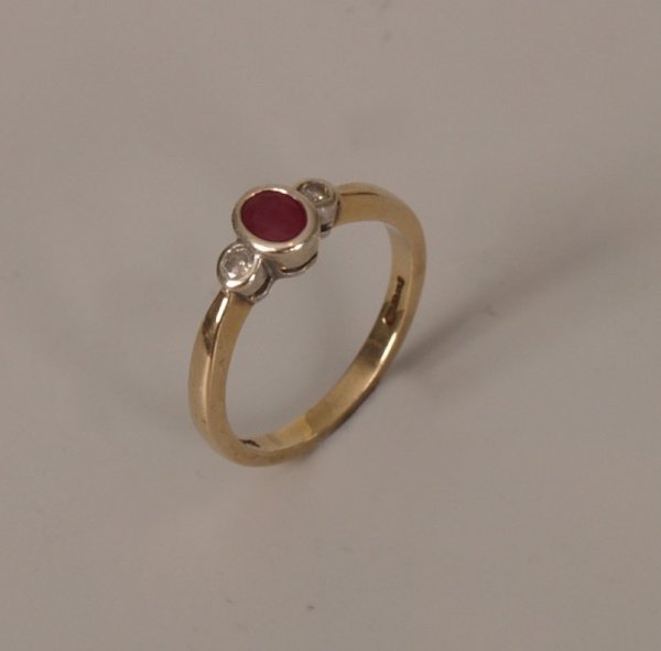 18K Gold Natural Ruby and Diamond Ring 0.4ct Ruby 10 Diamonds
