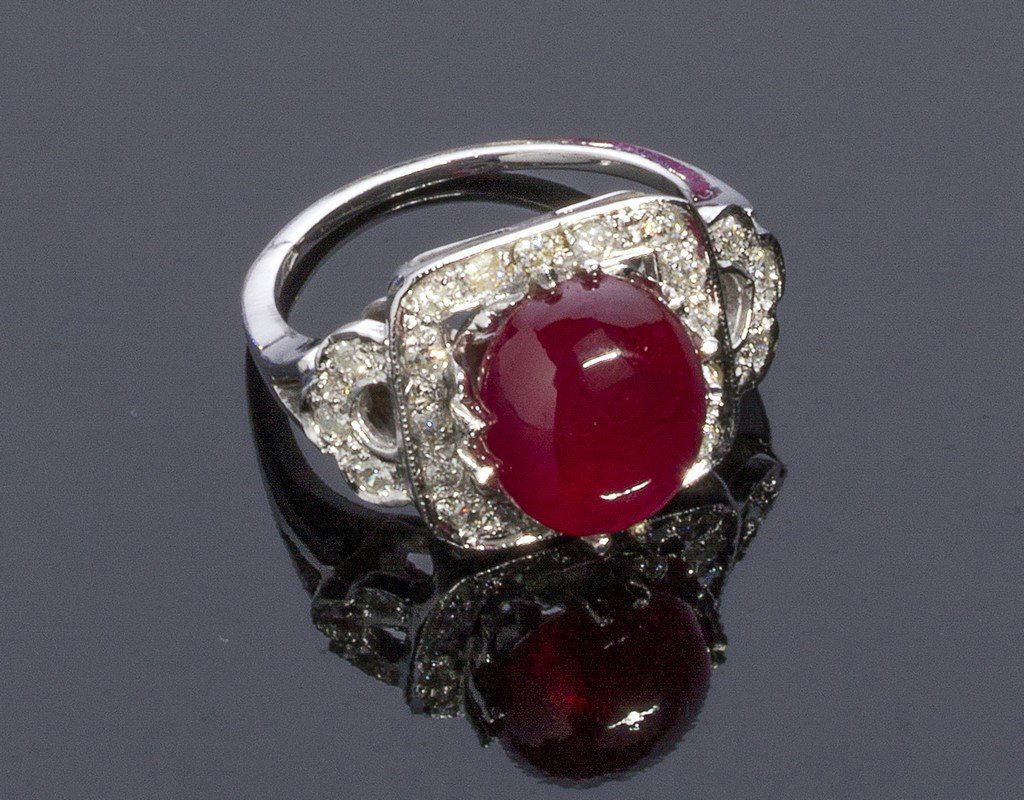JEWELRY RUBY DIAMOND RING 18K WHITE GOLD RED