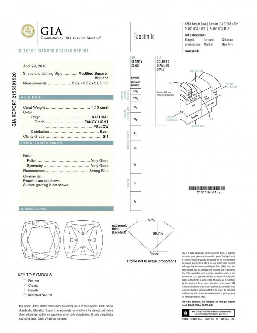 A 1.13CT FANCY LIGHT YELLOW CUSHION SHAPE CERTIFIED