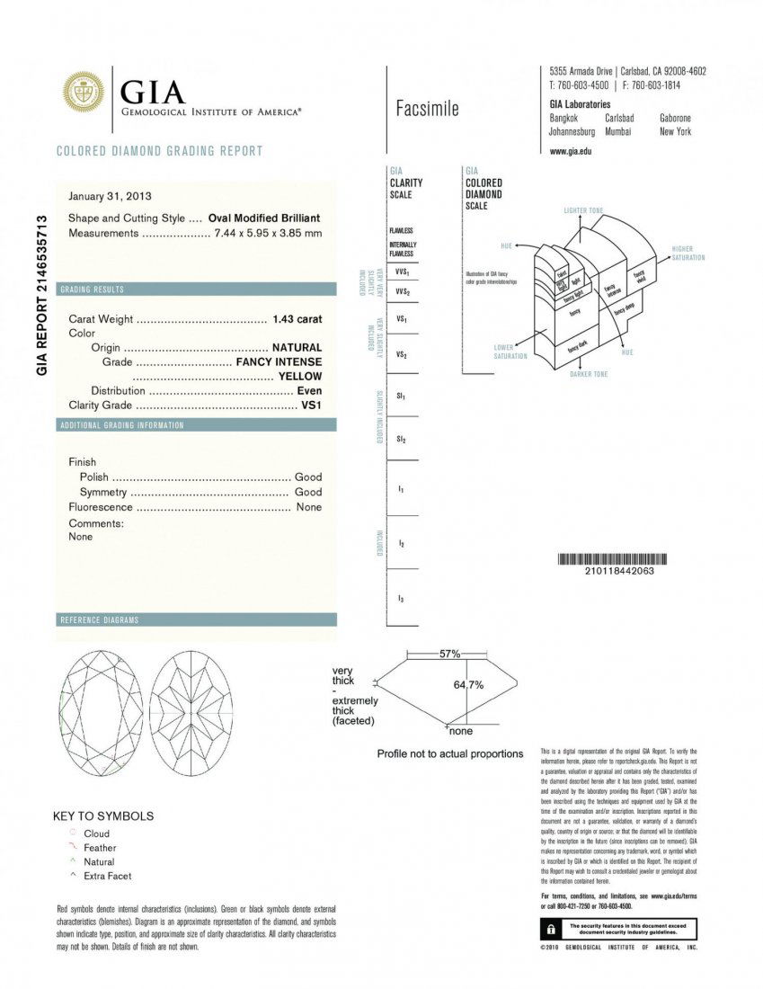 A 1.43CT FANCY INTENSE YELLOW OVAL SHAPE CERTIFIED