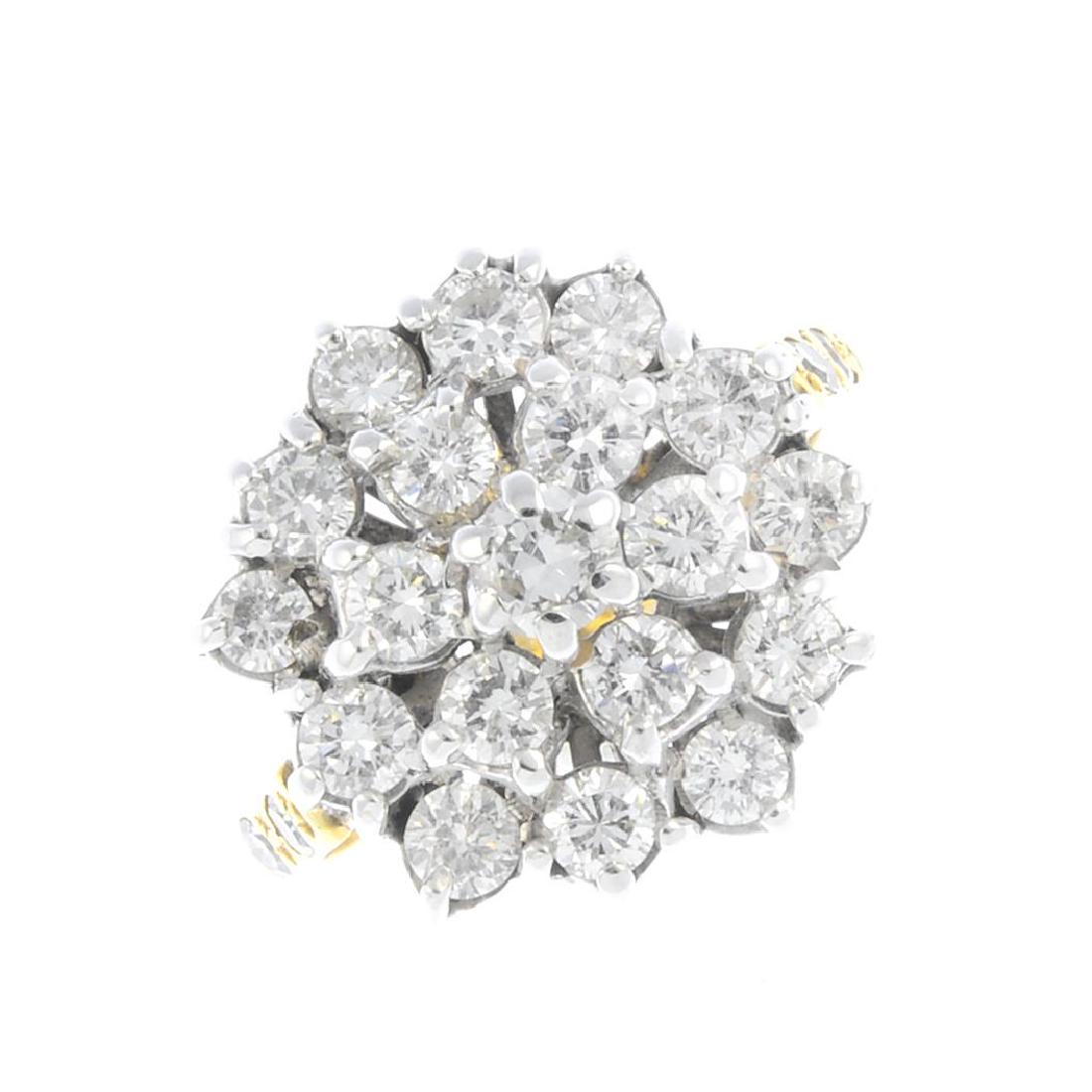 A 14ct gold diamond cluster ring. The circular-cut