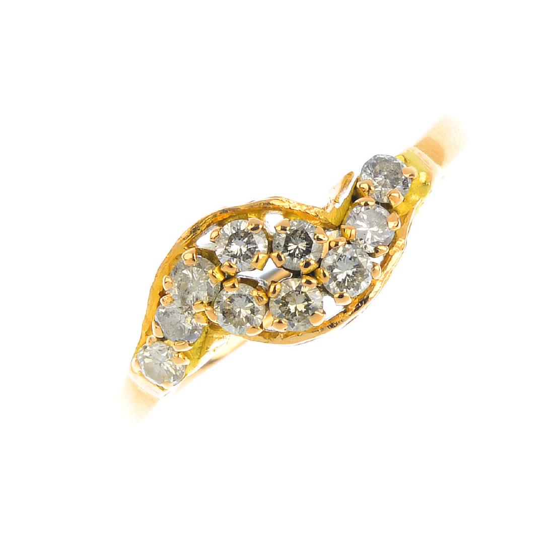 A 14ct gold diamond crossover ring. Designed as two