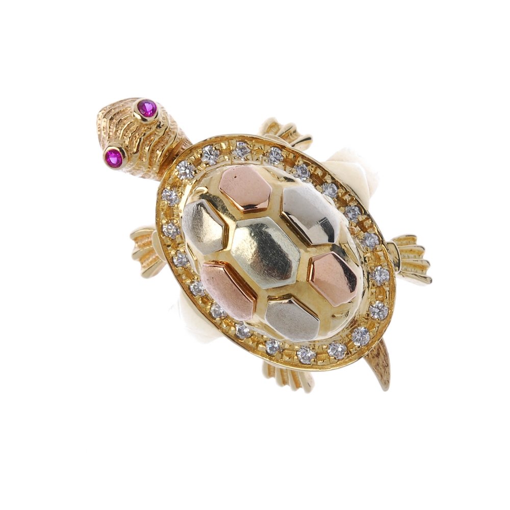 A 14ct gold gem-set turtle ring.