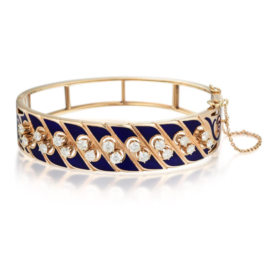 DIAMOND BLUE ENAMEL GOLD BANGLE 18K TWO TONE X STYLE OVAL SHAPEModern Jewelry4.4(204)See Sold PriceJul 13, 2025