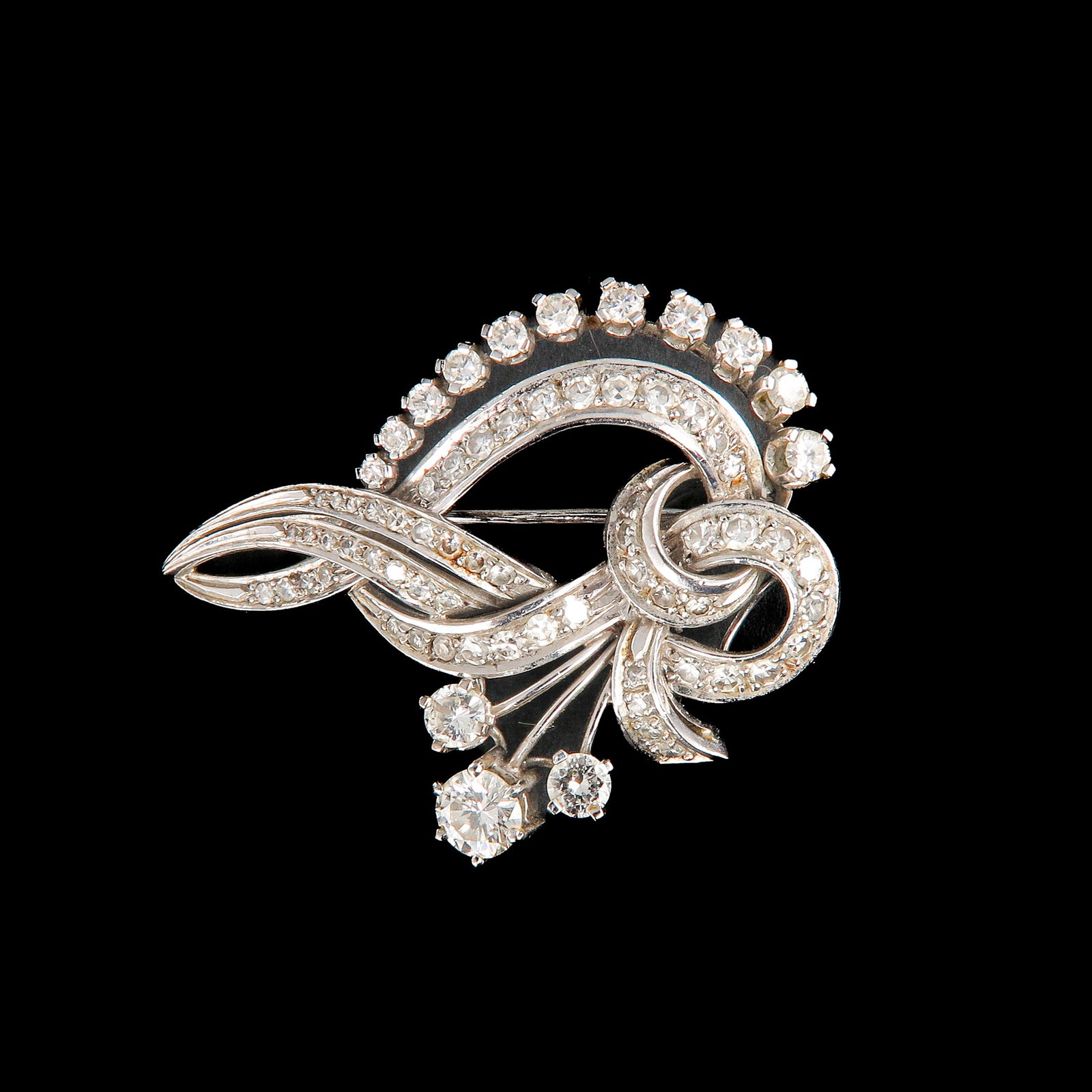 A FINE ANTIQUE DIAMOND BROOCH set with an old mine cushion cut diamond of 4.00 carats in a cluster oA FINE ANTIQUE DIAMOND BROOCH set with an old mine cushion cut diamond of 4.00 carats in a cluster of old cut diamonds, accented by further old and rose cut diamonds to the openwork frame, the diamond