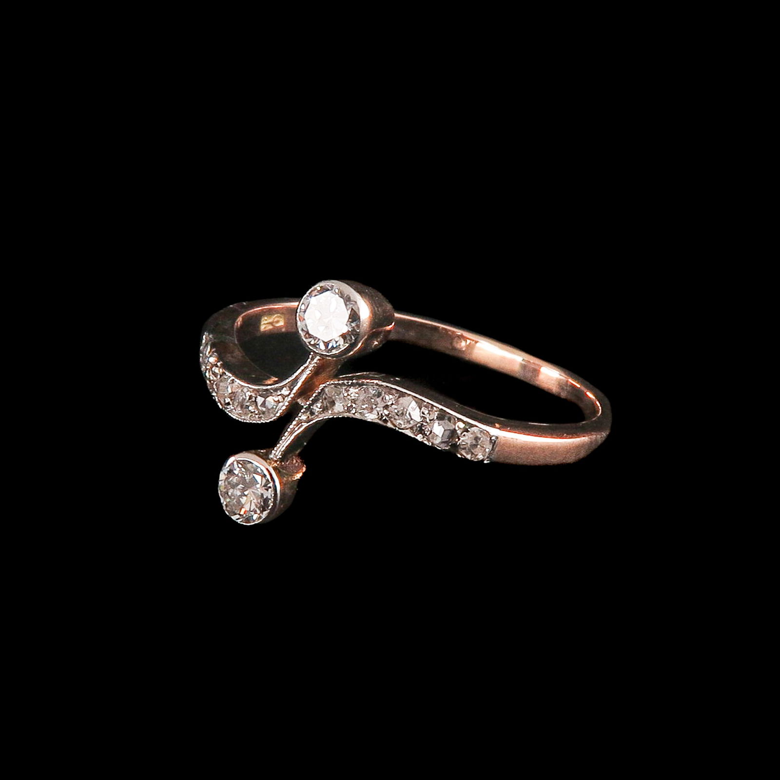 SoldA Ladies 14KG Diamond RingSet with 2 antique rose cut diamonds and 3 bolsjewiek cut diamonds, largest diamond is 4.5 mm. in diameter, ring size 17.See Sold Price