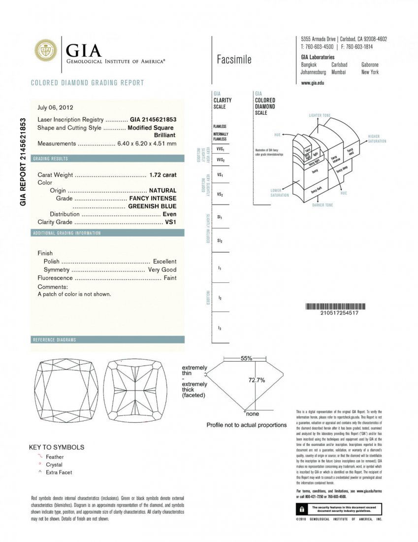 A 1.72CT FANCY INTENSE GREENISH BLUE SQUARE SHAPE