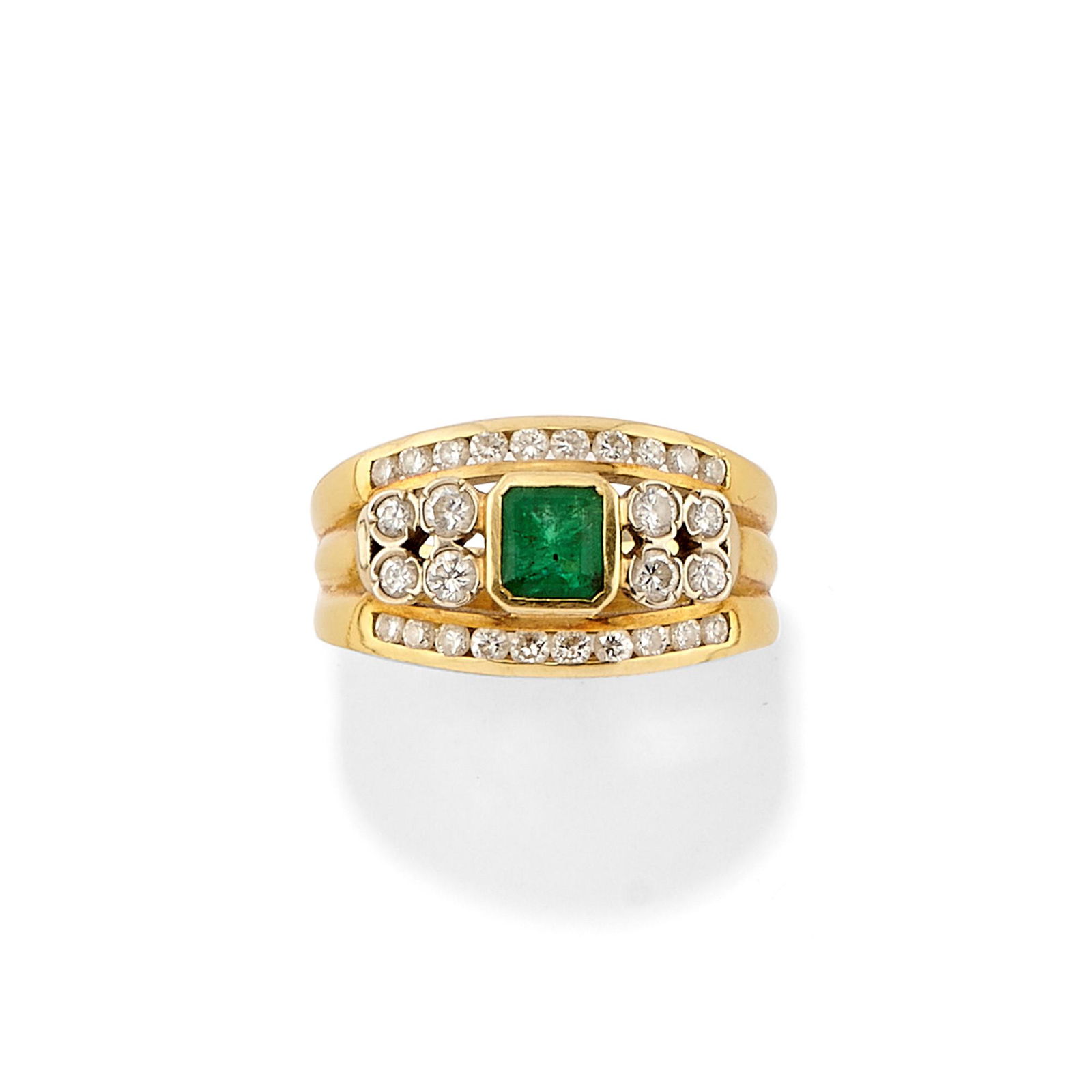 A 18k two-color gold and emerald ring